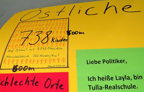 Auch für die Quartiersarbeit zeigen die Beiträge der Kinder wichtige Bedarfe an, insofern sollen diese auch in die Entwicklung eines integrierten Handlungskonzepts einfließen. Auch die vielen engagierten Erwachsenen im Quartier haben von den Kindern bei vielen - gefühlt auch manchmal gebetsmühlenartig vorgebrachten - Forderungen Rückendeckung erhalten: Bolzplätze, Mehrzweckraum und eine Verbesserung des subjektiven Sicherheitsgefühls auf Straßen und Plätzen sind auch für die kleinsten Unterstadtbewohner ganz zentrale Anliegen.